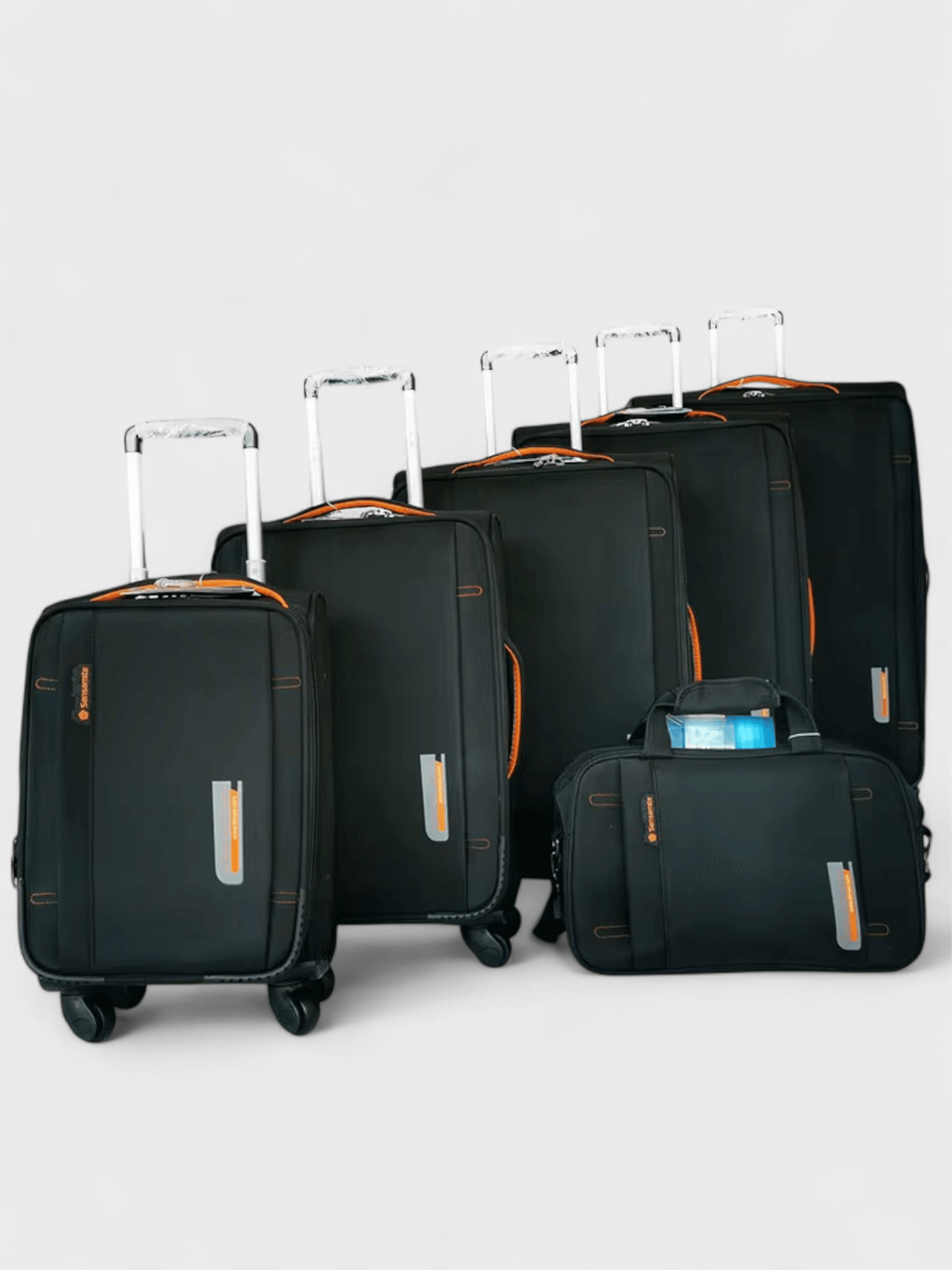 The Skytrail Set of 6 – Navy is made from high-quality cloth and includes four luggage sizes (32", 28", 24", 20") plus a laptop bag, offering a complete and durable travel solution.